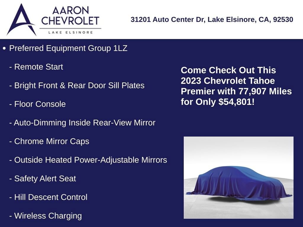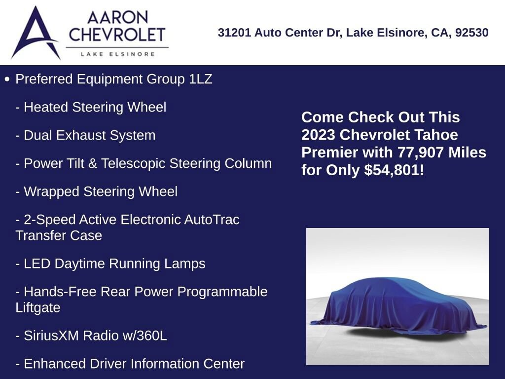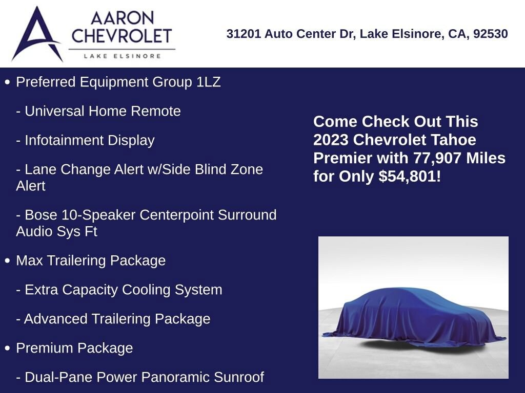 Whether you're embarking on a family adventure or navigating the demands of your daily life, the 2023 Chevrolet Tahoe Premier is the ultimate companion. Experience the pinnacle of SUV luxury and capability. Visit our showroom today to test drive this exceptional vehicle and discover how it can transform your driving experience.