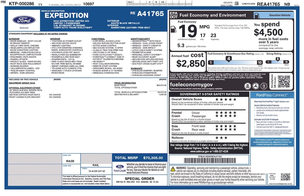 Used 2024 FordExpedition Limited SUV EcoBoost V6 GTDi DOHC 24V Twin Turbocharged